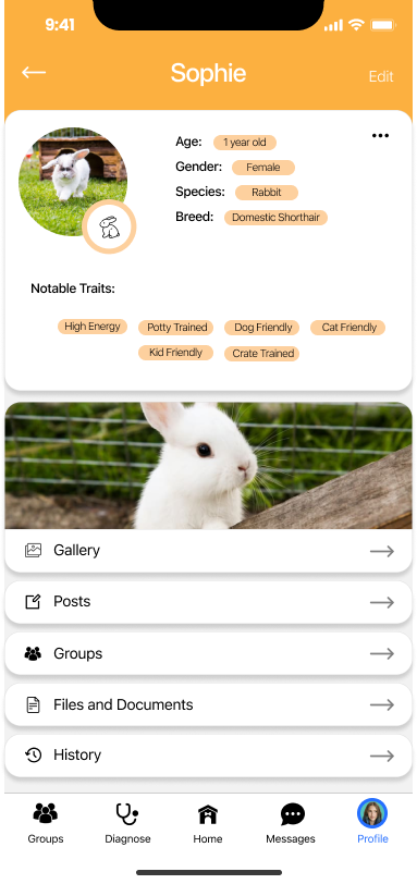 While each owner has their own profile to interact with the community, pet parents also can add pet profiles to their accounts to keep documentation of all things about their pets. The pet profile can include photos, posts about them, the groups that the pet parent joined because of them, and most importantly, their medical history. In Files and Documents, pet parents can upload check-up history, medications, and vaccination records. In History, pet parents can save in app diagnoses. This function really contributes to PetMD’s guarantee of being the ultimate app for pet parents!