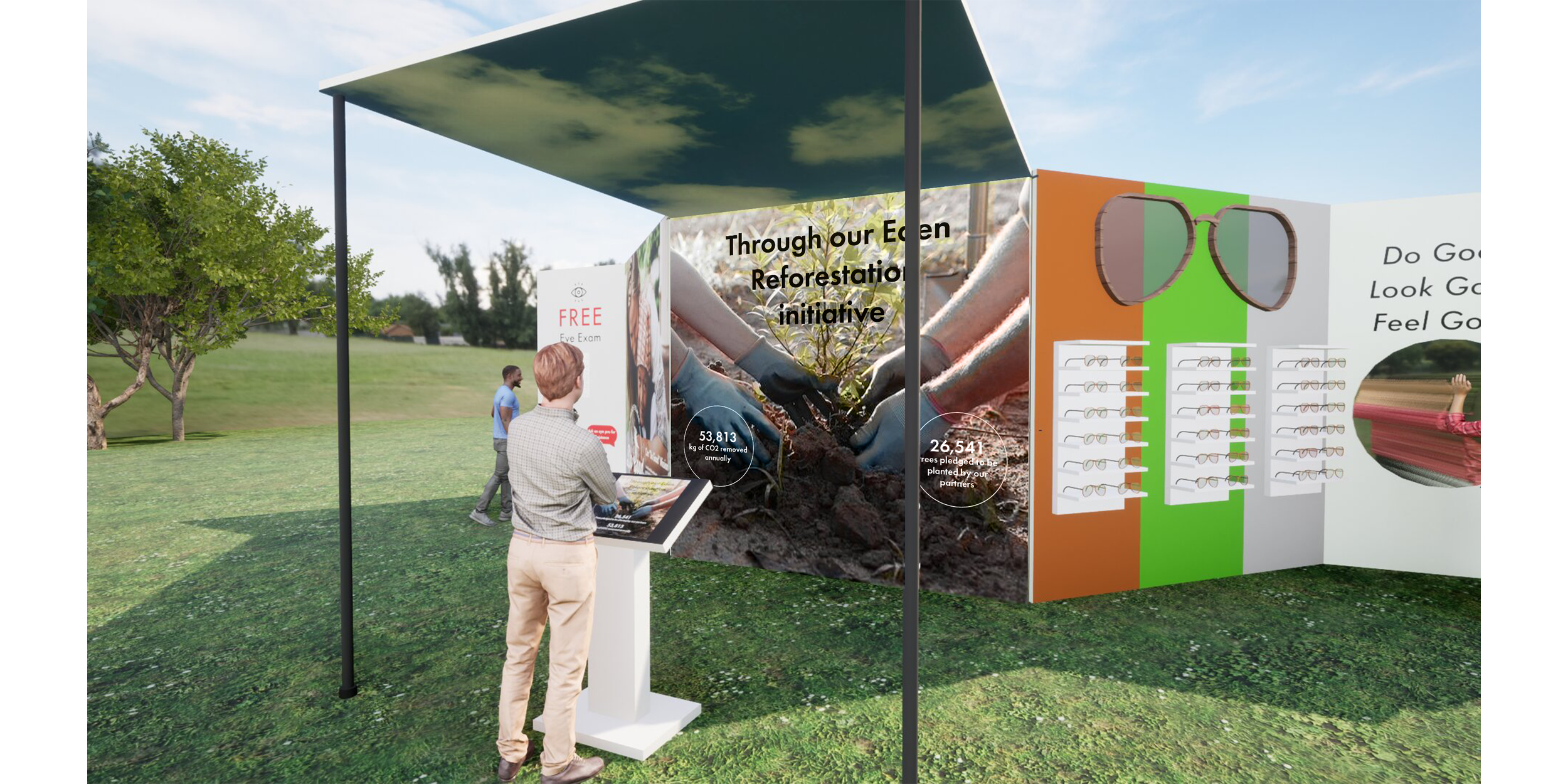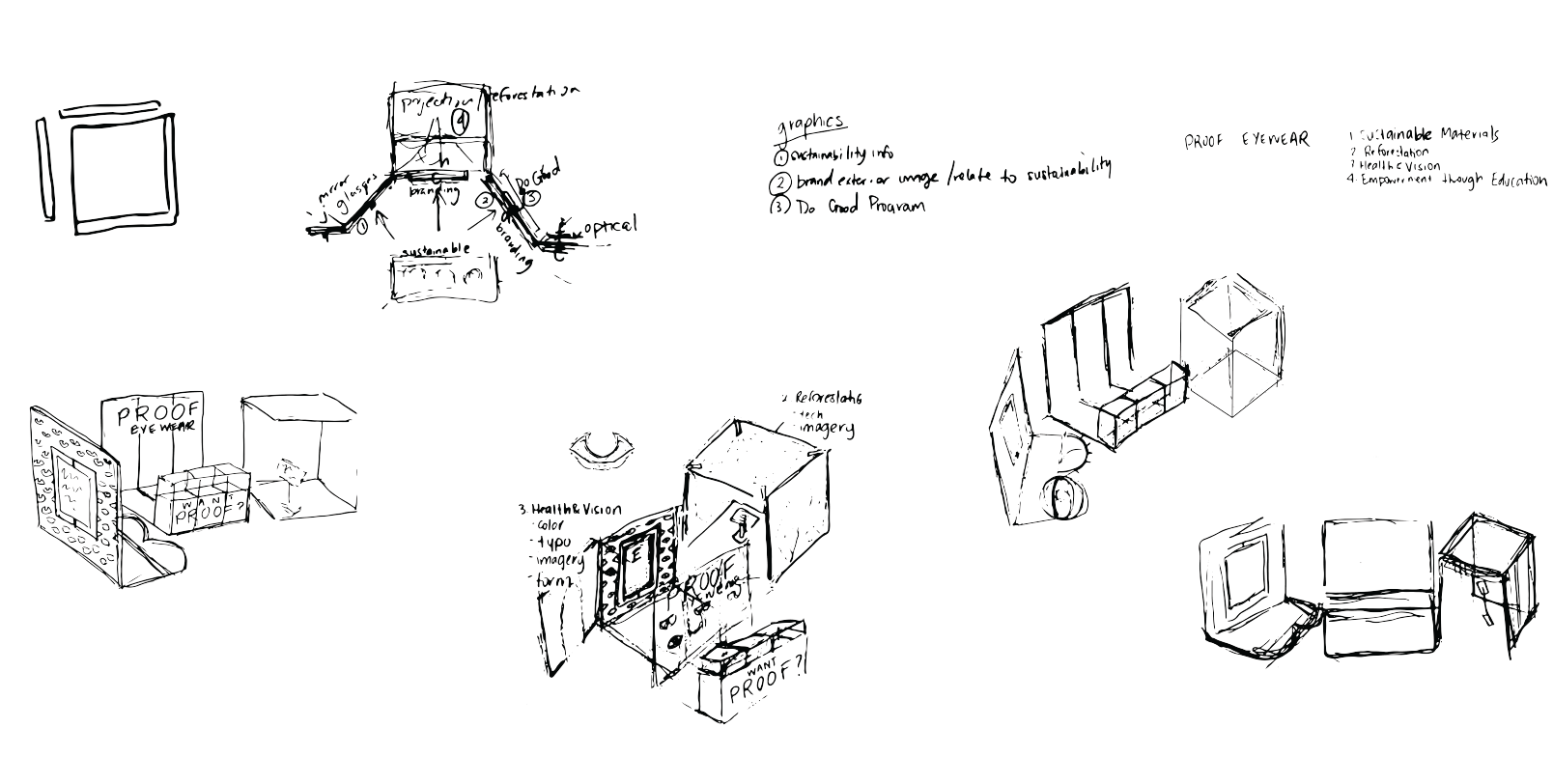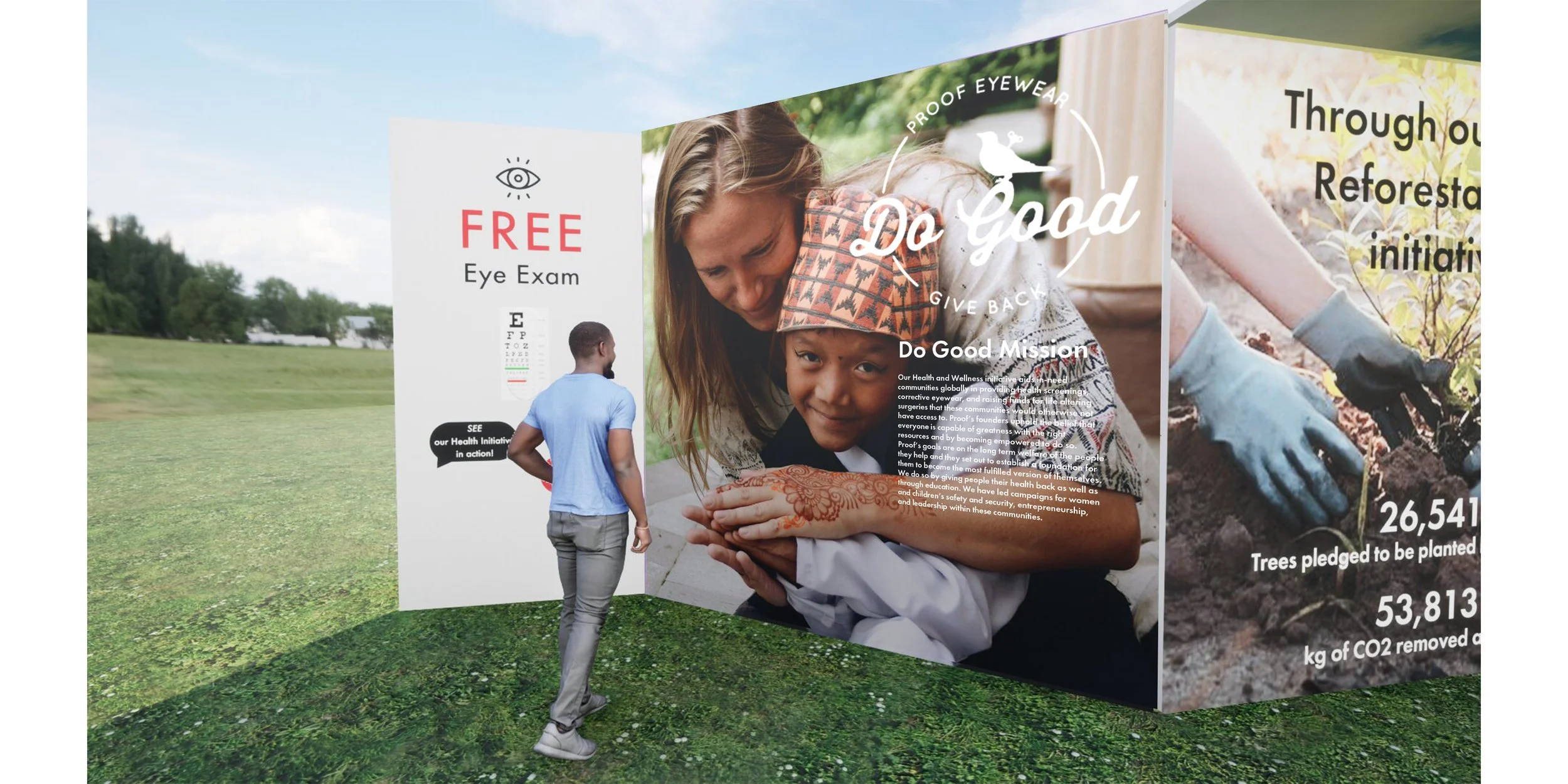Proof Eyewear is an eyewear brand focused on giving back to communities globally in addition to producing unique eyewear. They need a mobile installation to take to events that highlight at least 4 of the services they provide. The installation should captivate audiences by being interactive and educational.