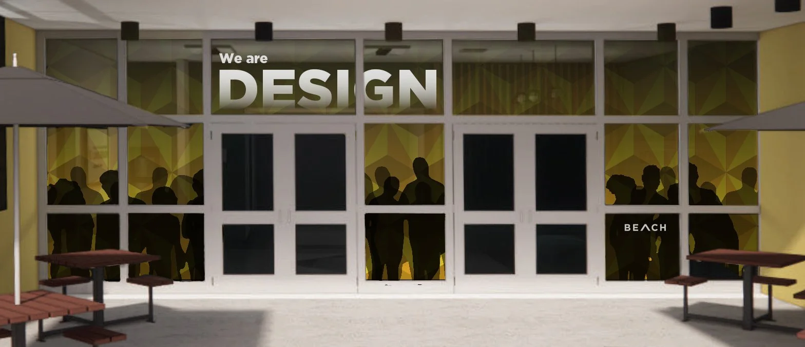 The installation must utilize any combination of 5 of the following branding techniques; color, graphic expression, shape, form, typography, technology, texture, or imagery.